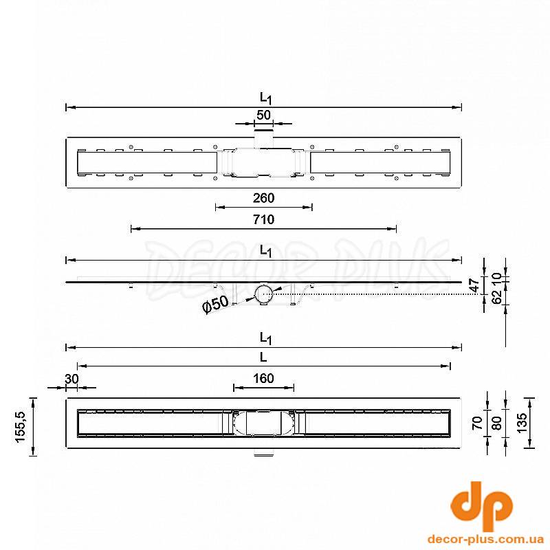 Душевий канал з полірованою решіткою ГАРМОНІЯ 70 з "сухим" сифоном