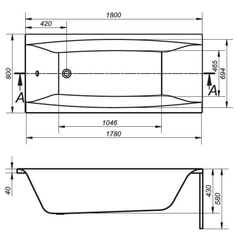 Ванна акрил. VIRGO 180х80+ніжки тип 1(раніше 6)