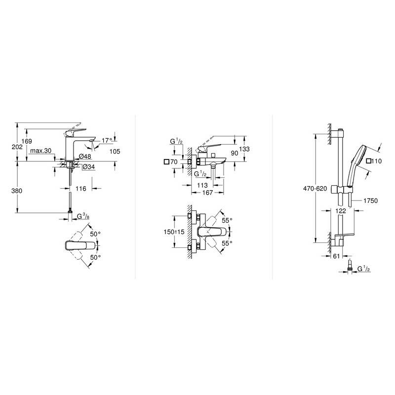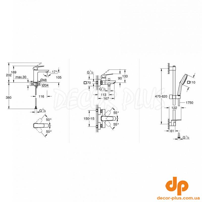 | Комплектация | тримач для душу, душовий шланг, лійка, змішувач для ванни, змішувач для раковини, штанга |