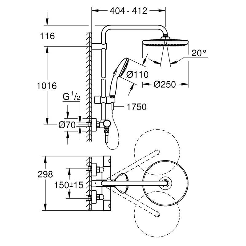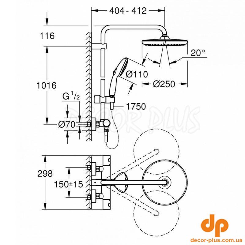 Душ система TEMPESTA 250 душ, термостат, хром