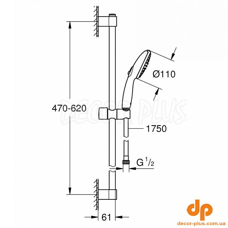 | Комплектация | душова штанга, душовий шланг, ручний душ, тримач для ручного душу |