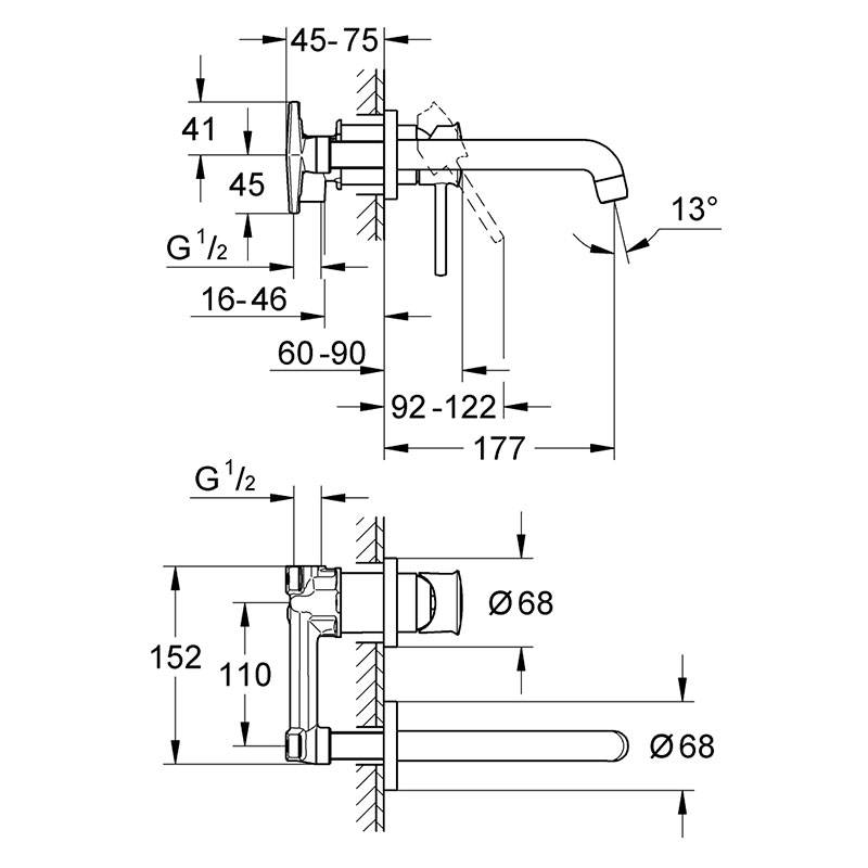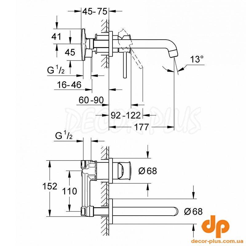 Змішувач BAUCLASSIC NEUTRAL раковина, 2 отв, вбудований, хром