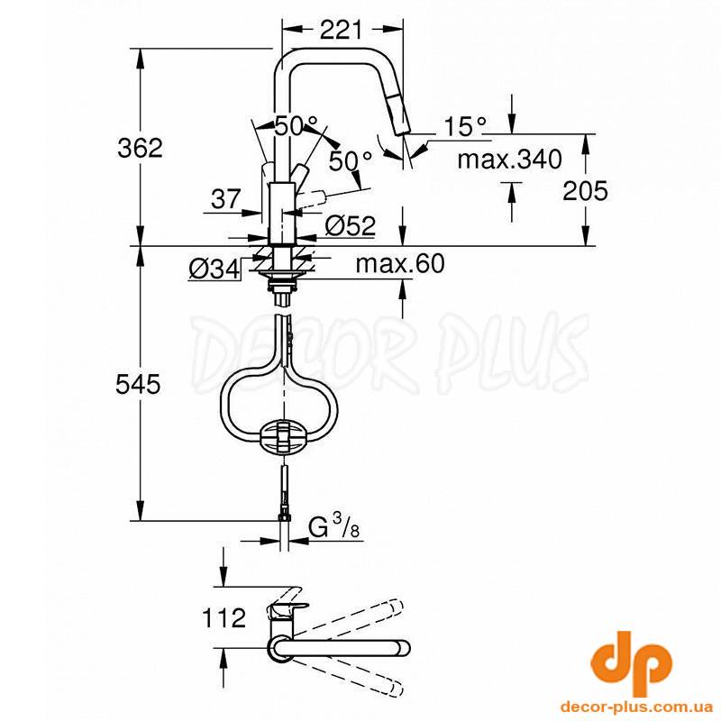| вилив | З висувною лійкою, U-подібний |