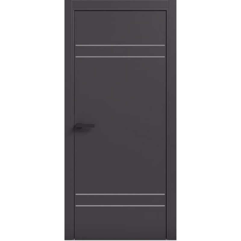 Двери межкомнатные Terminus Light ПК 08 Антрацит Молдинг ЧЕРНЫЙ или СЕРЫЙ — надежное решение в стиле минимализм. Каркасно-щитовая конструкция (40 мм) на основе хвойного бруса обеспечивает стабильность формы и высокую звукоизоляцию.