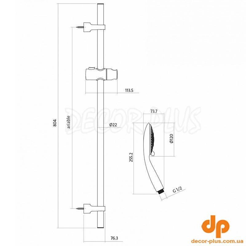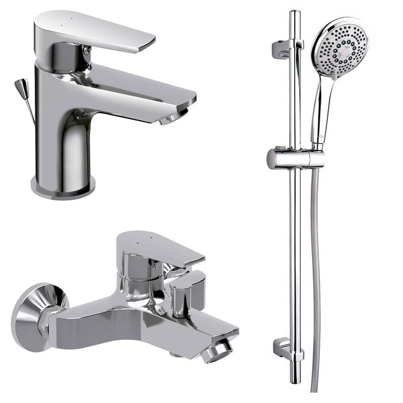 | Комплектация | тримач для душу, душовий шланг, лійка, змішувач для ванни, змішувач для раковини, штанга |