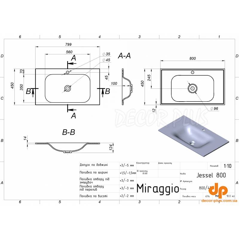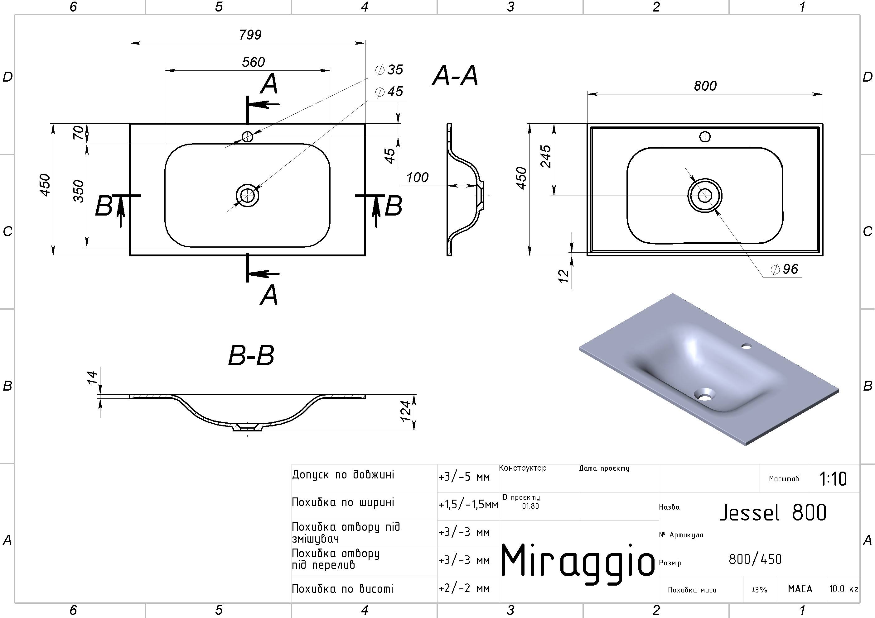 | Назва | Умивальник на тумбу MIRAGGIO JESSEL 12,4*80*45 Глянець Білий 0000748 |