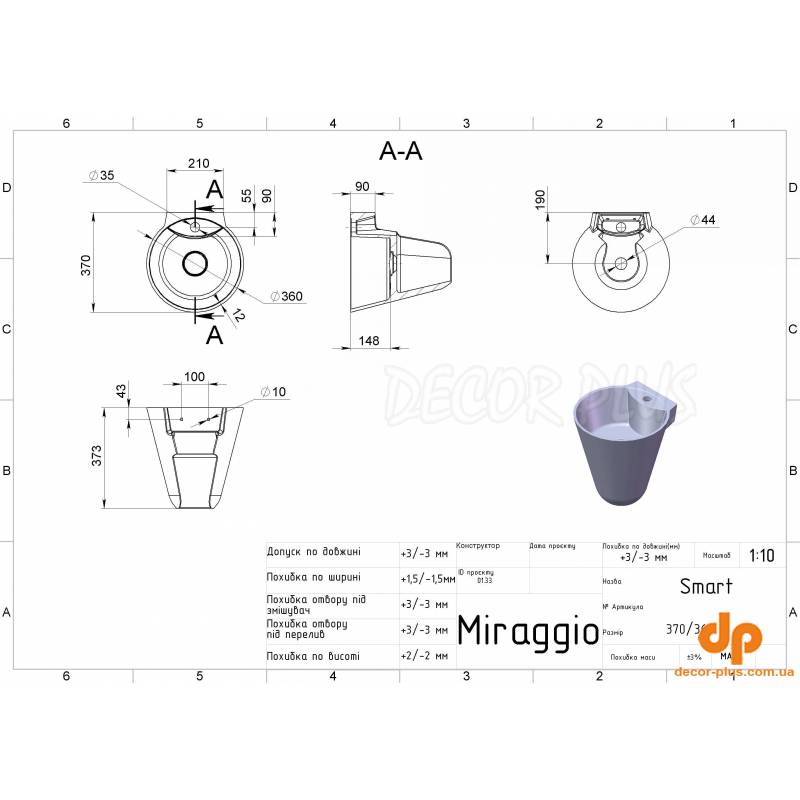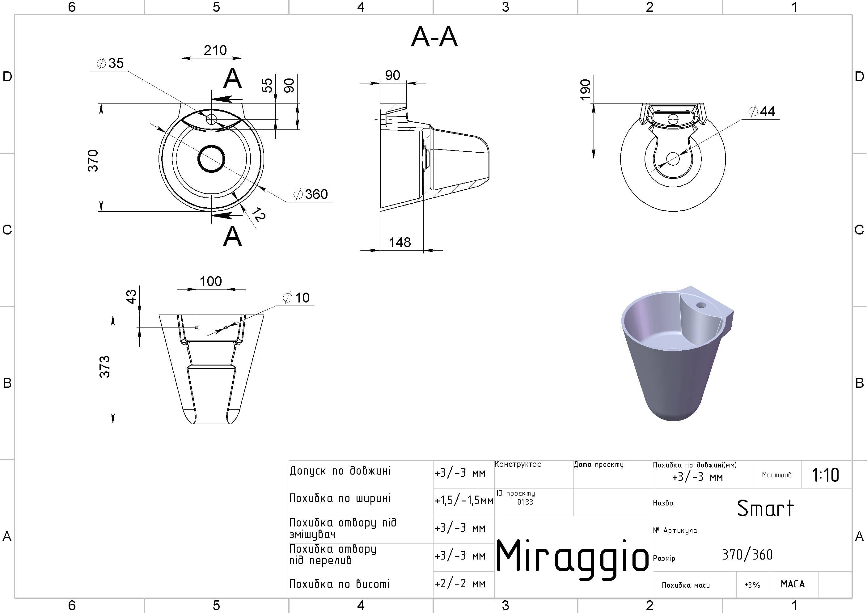 | Назва | Умивальник підвісний MIRAGGIO SMART 37,3*36*37 Глянець Білий 0000240 |