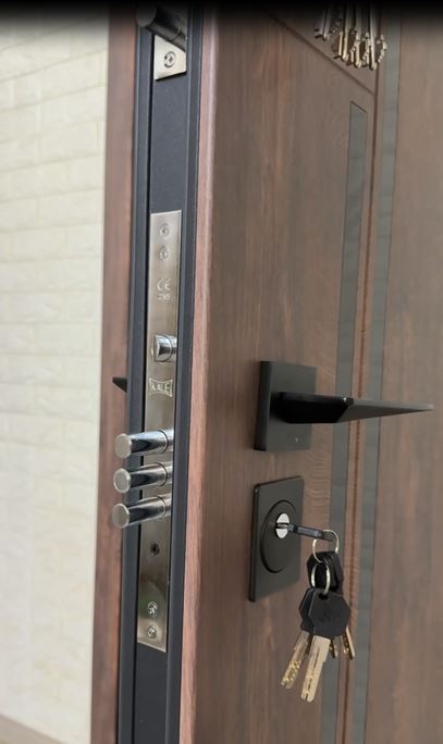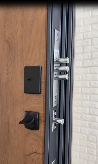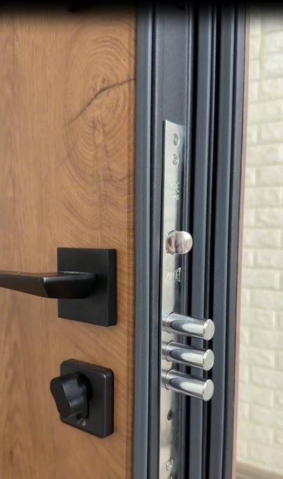 Центральна частина дверей — її полотно — має вражаючу товщину 96 мм. Усередині використовується мінеральна вата високої щільності, яка є чудовим тепло- та звукоізолятором. Завдяки цьому двері ефективно захищають від шуму та холоду, створюючи комфортну атмосферу у вашій квартирі. Крім того, у комплект входять три петлі підшипникового типу, що забезпечують плавне та безшумне закривання дверей.
