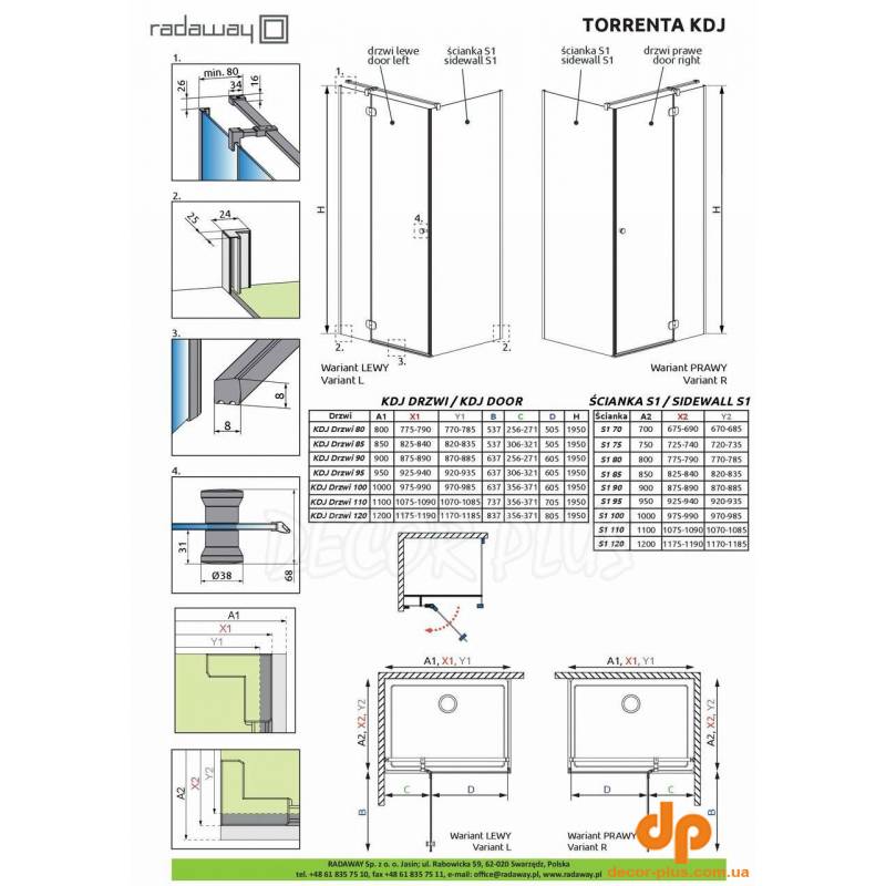 | Тип відчинення душу | Розпашний |