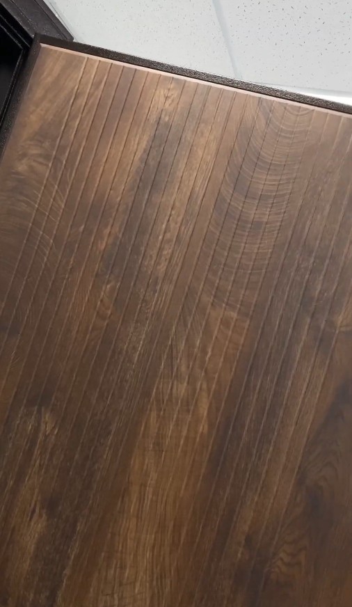 Всередині вашого будинку двері виглядатимуть естетично та сучасно. Внутрішня частина декорована МДФ-накладкою товщиною 8 мм. Покриття виконано міцною ПВХ-плівкою в благородному кольорі «Спил коньячний». Цей теплий деревний відтінок і натуральна текстура легко впишуться в будь-який інтер’єр передпокою, додаючи нотку розкоші.