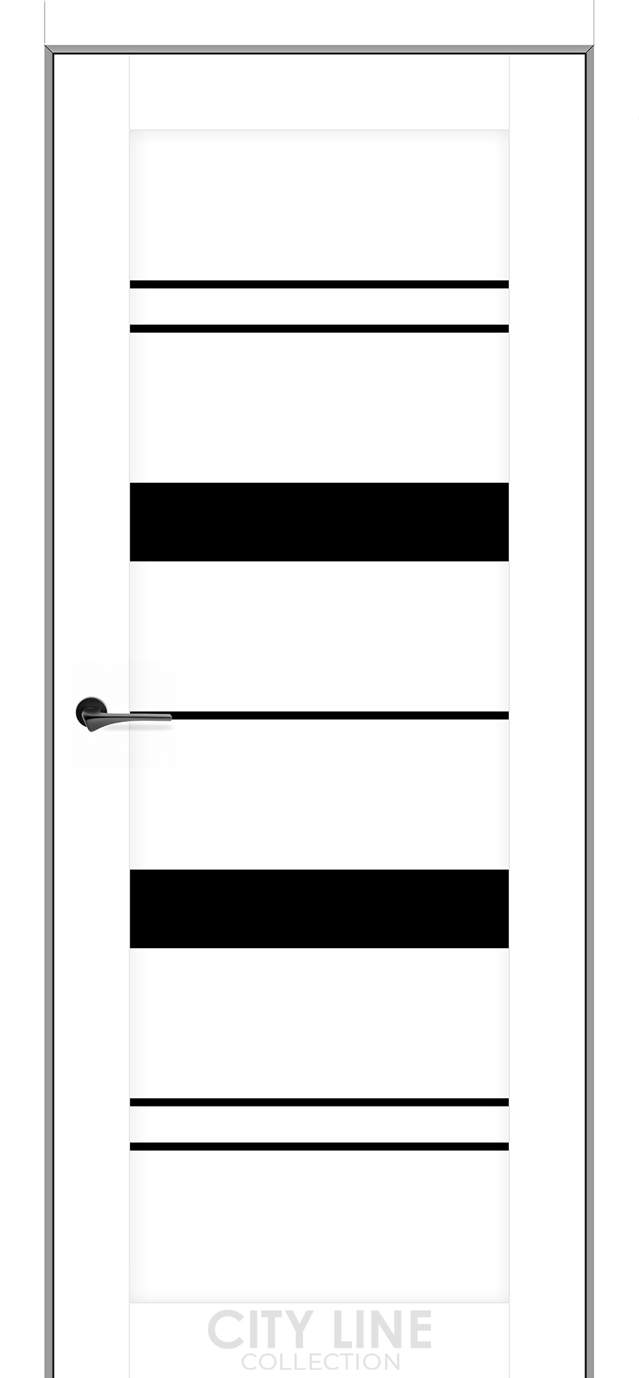 У засклених моделях дверей City Line використовується міцне та безпечне скло товщиною 4 мм, доступне у двох стильних варіантах: сатинове (біле) та Lacobel (чорне).