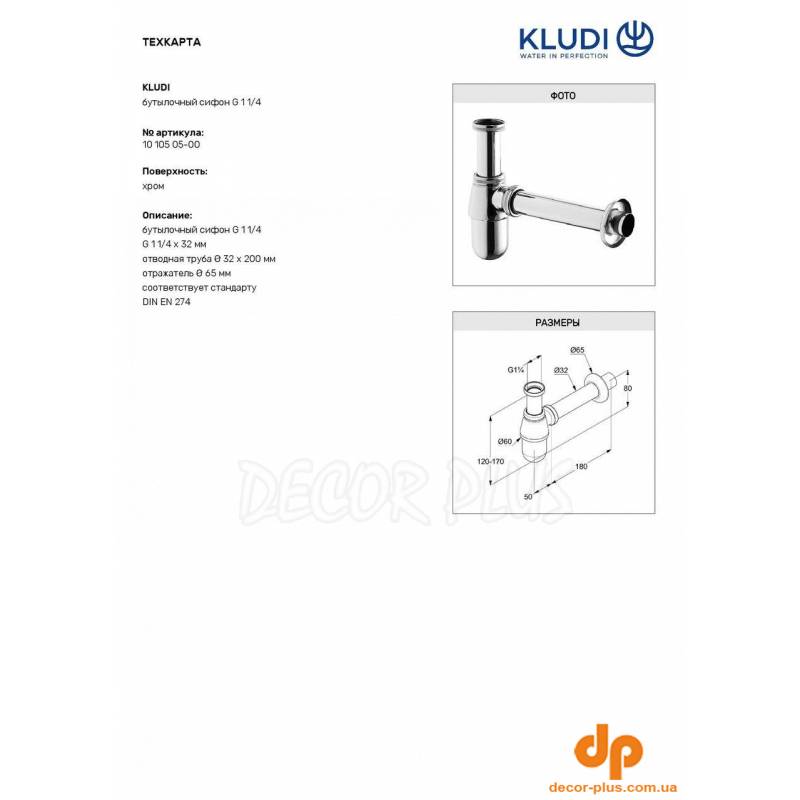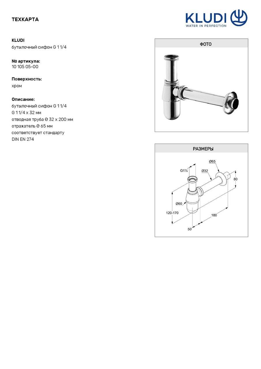 Сифон для умивальника G1 (1010505-00), Kludi