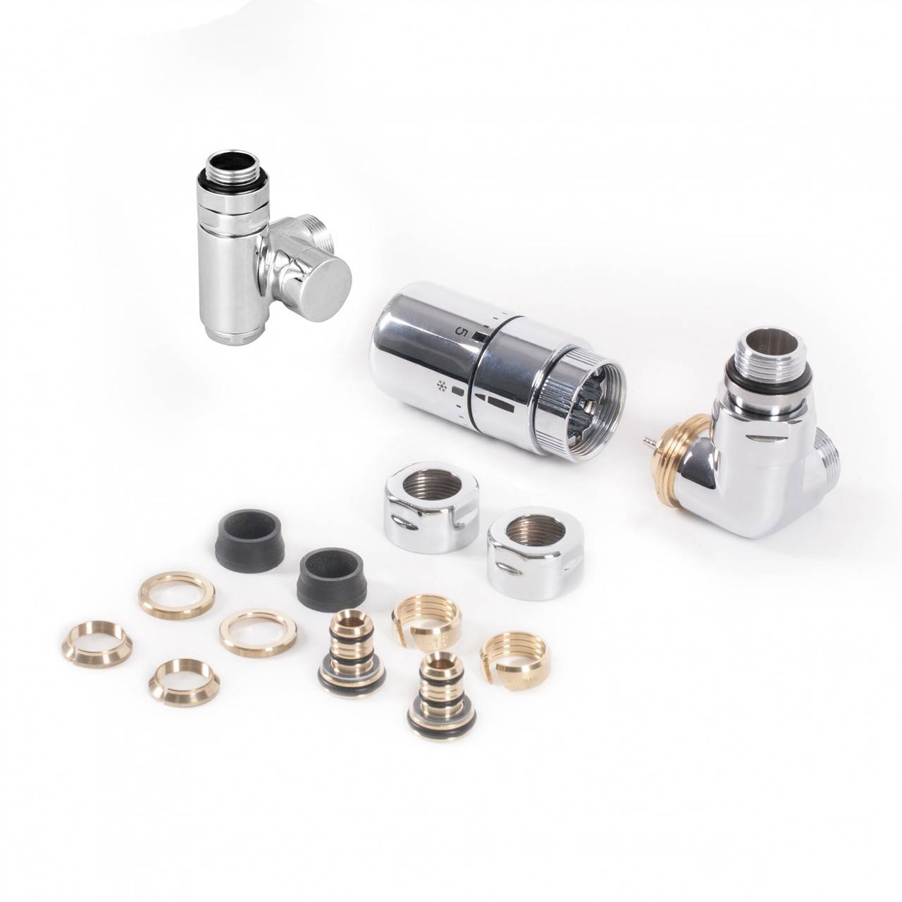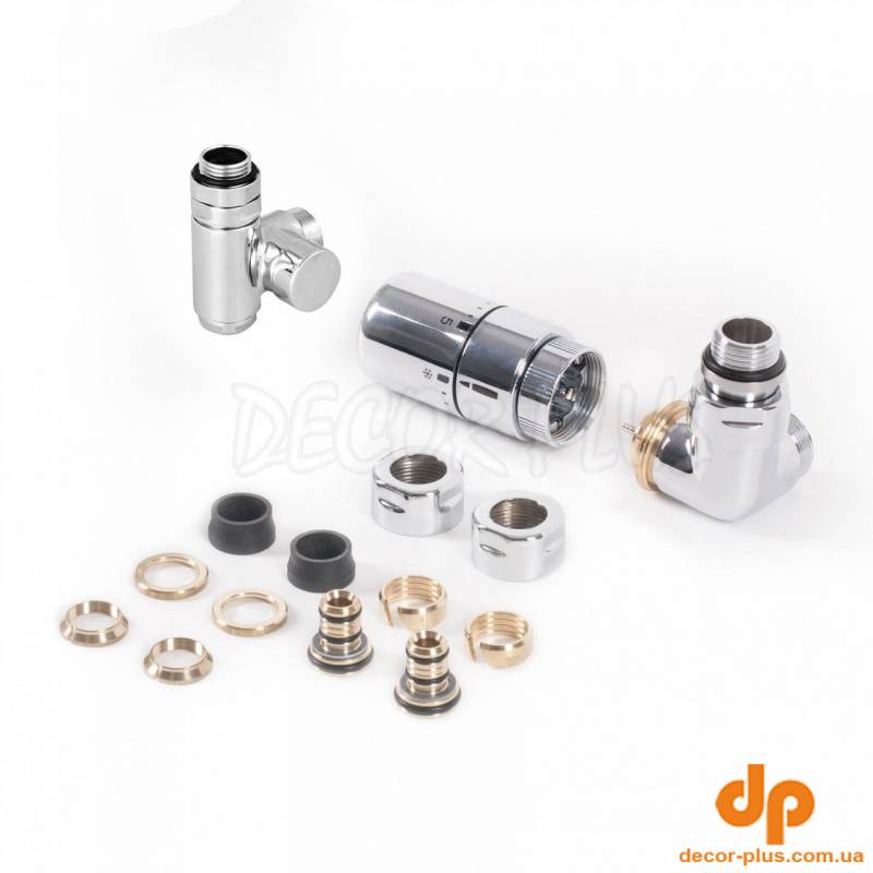 Набір вентилів термостатичний трьохосьовий з трійником правий хром Terma