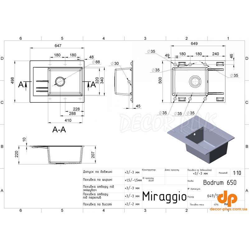 Кухонна мийка BODRUM 650 зі штучного каменю від MIRAGGIO - практичне та функціональне рішення для обладнання сучасної кухні.