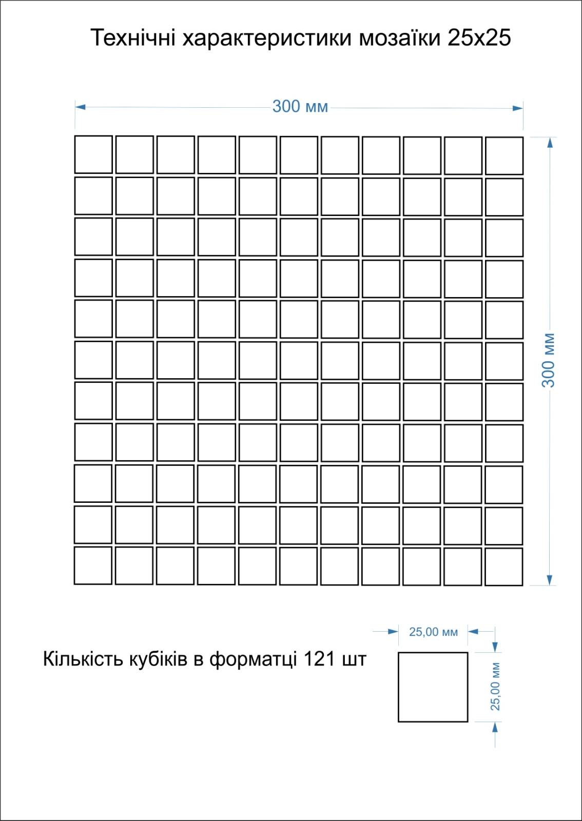 | Форма елемента мозаїки | Квадрат (25×25 мм) |
