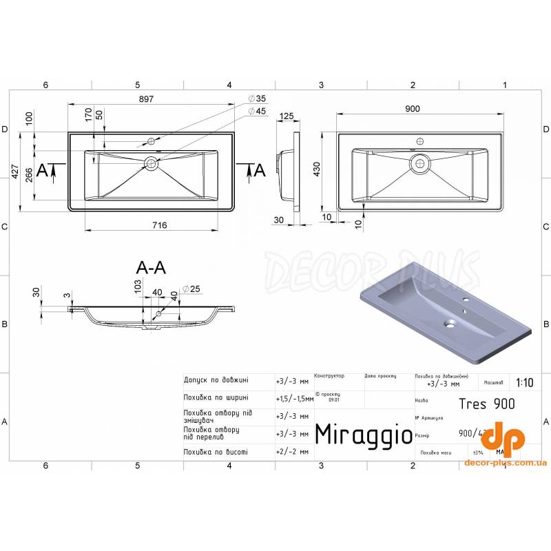 | Назва | Умивальник на тумбу MIRAGGIO TRES 12,5*90*43 Глянець Білий 0001542 |
