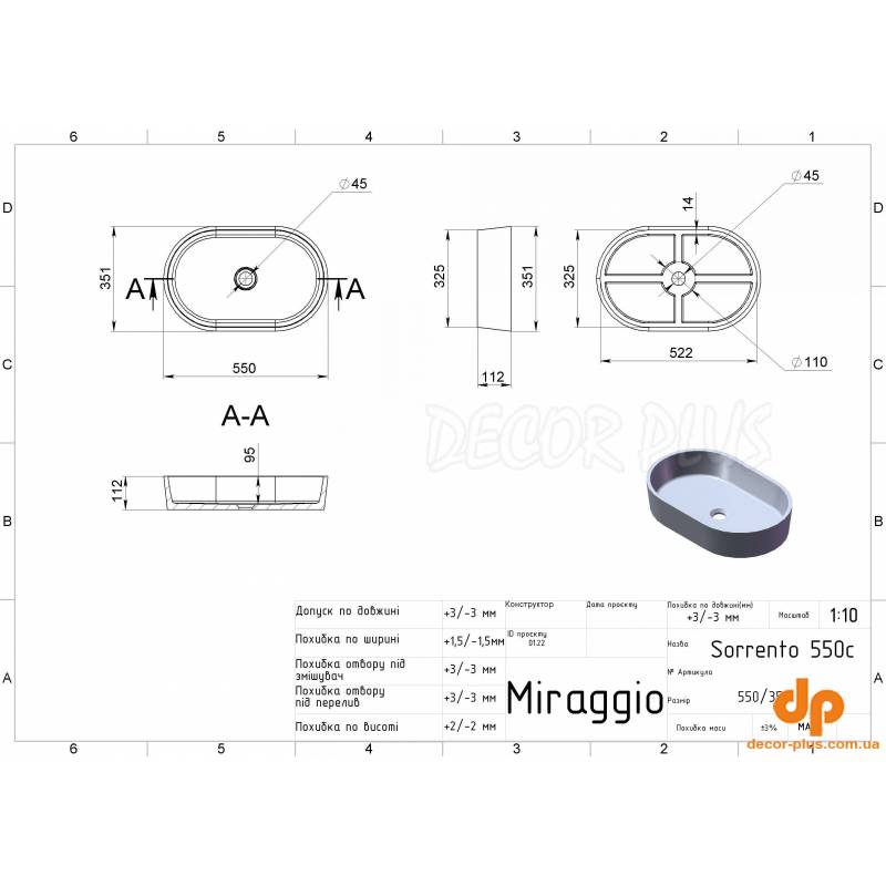 | Назва | Умивальник накладний MIRAGGIO SORRENTO 11,2*55*35,1 Mirasoft Білий 0001024 |