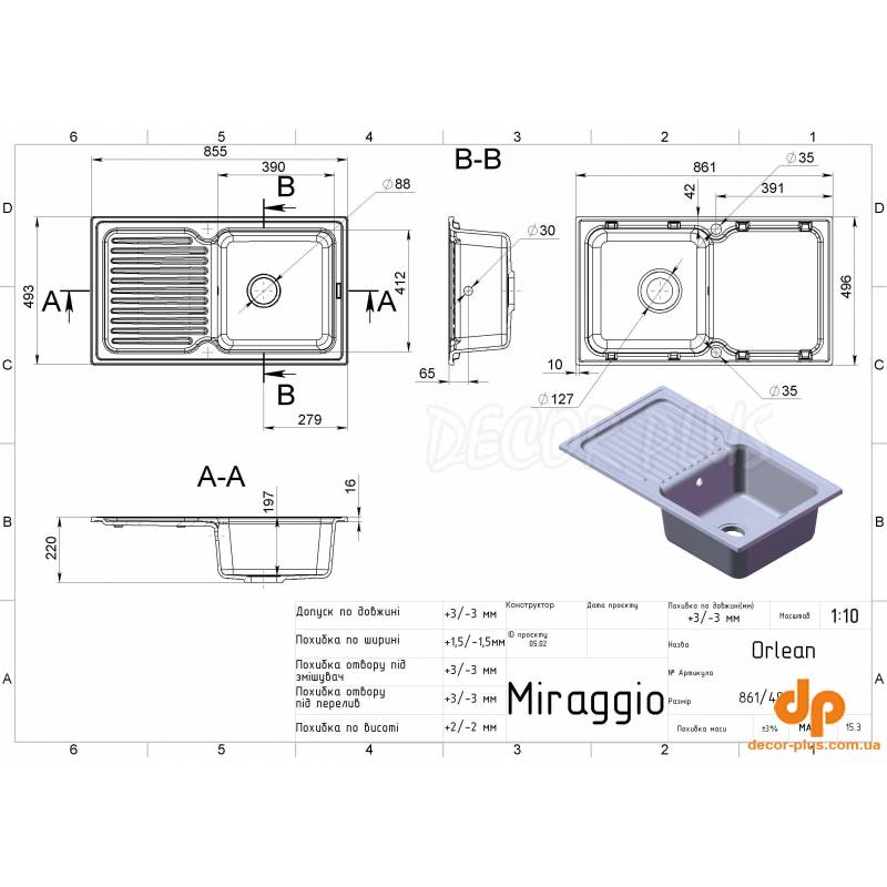 | Назва | Кухонна мийка врізна MIRAGGIO ORLEAN 50*87*22 Пісочна 0000036 |
