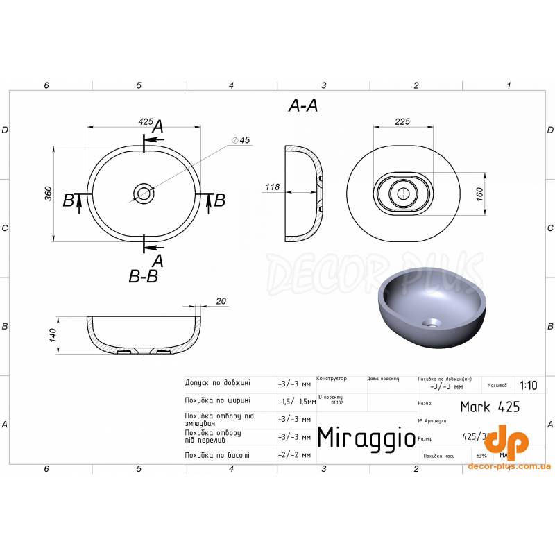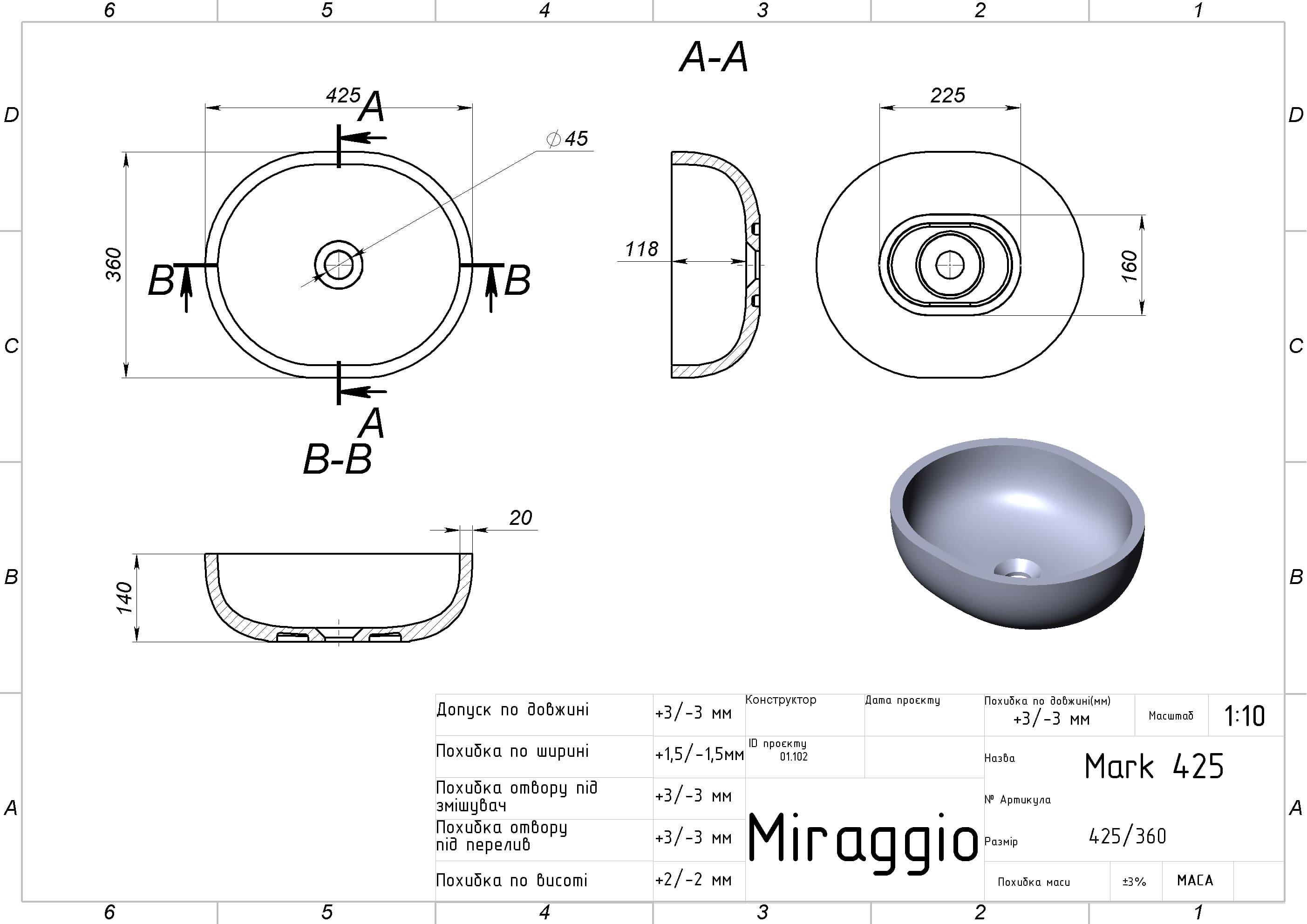 Умивальник MARK 425 від бренду MIRAGGIO - це ідеальне рішення для санвузла дому, готелю чи дачі.