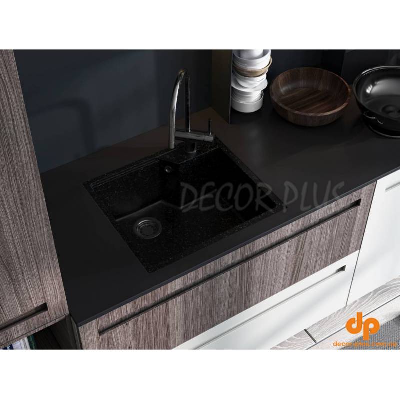 Суміш, з якої виготовлена мийка, на 80% складається з кварцевого піску та на 20% з поліефірної смоли, що забезпечує міцність виробу. Кухонна мийка витримує перепади температур від -65 до +65°C та не підається впливу агресивних побутовик фарбників.