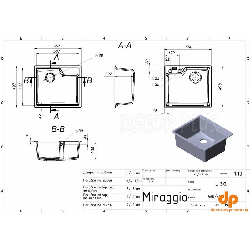 | Назва | Кухонна мийка під стільницю MIRAGGIO LISA 50*56*24 Чорна 0002249 |