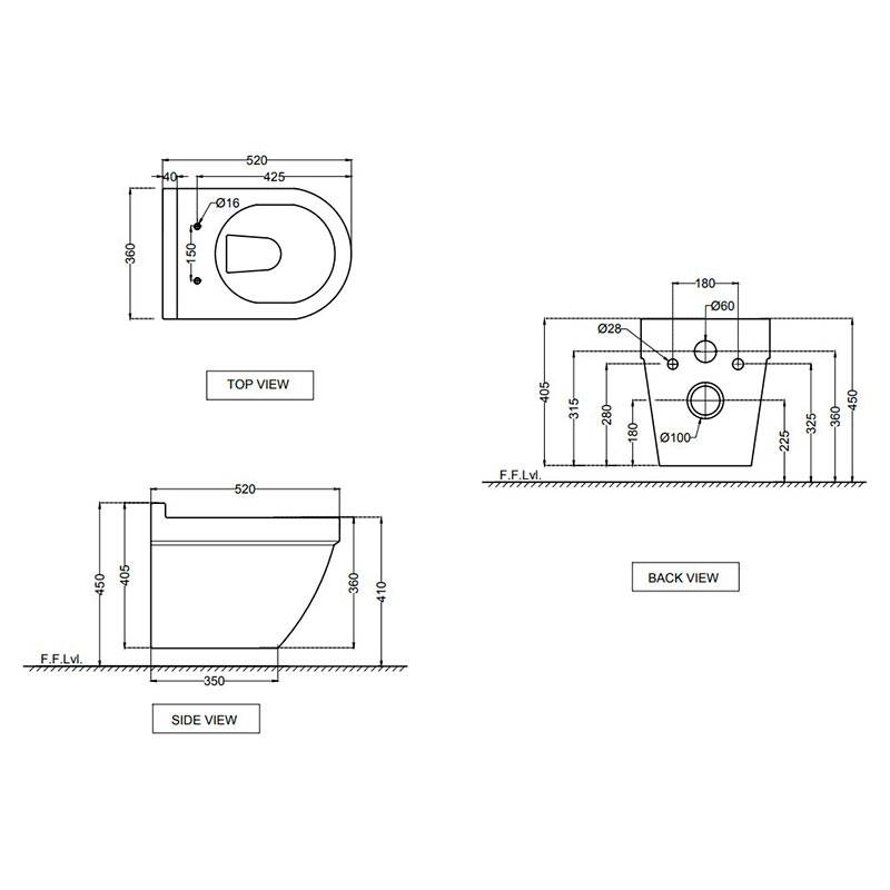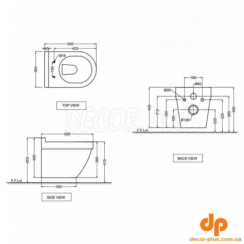| Габарити унітазу (ВхШхГ) | 360x520x405 |