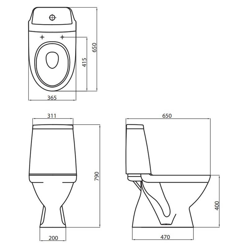 | Габарити унітазу (ВхШхГ) | 365х650х790 |