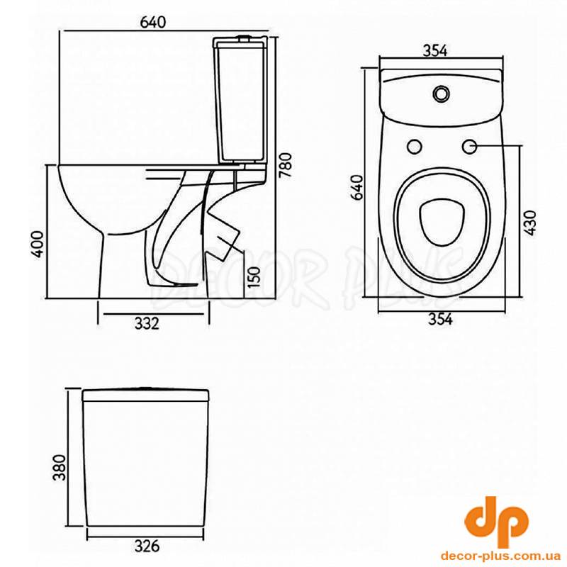 | Габарити унітазу (ВхШхГ) | 780x354x640 мм |