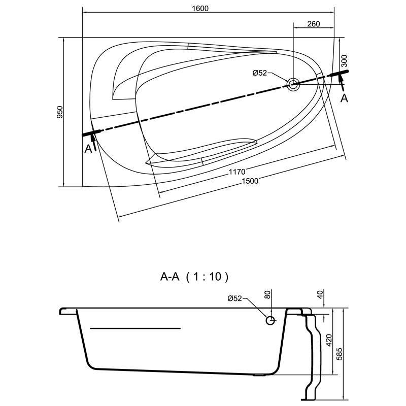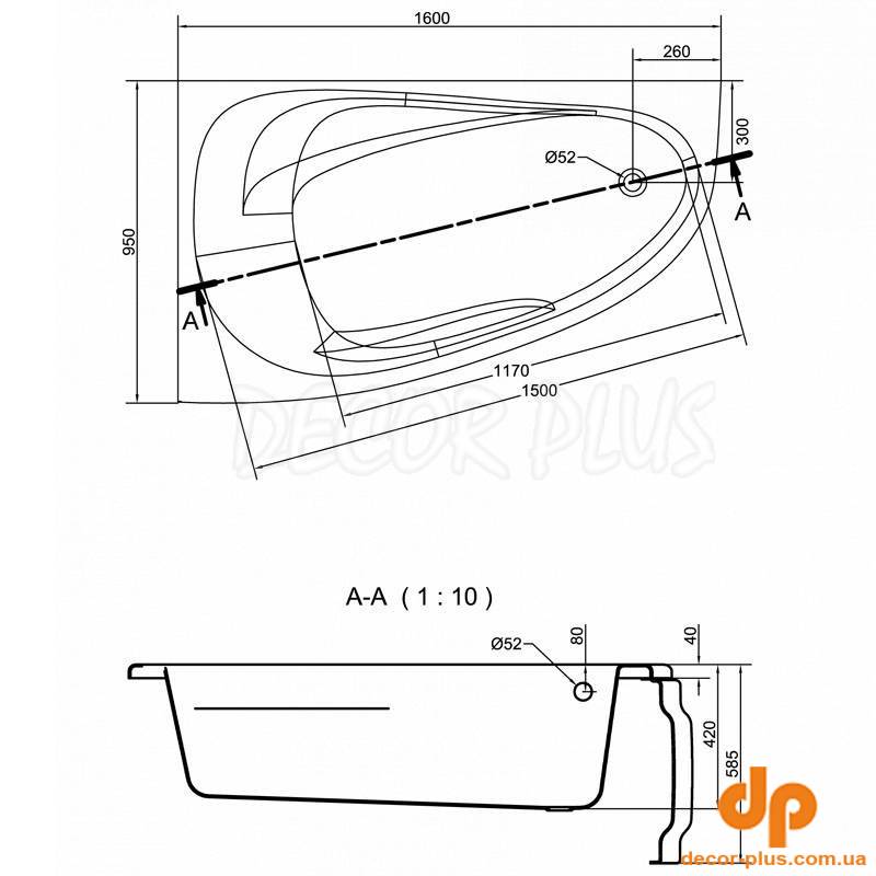 | Форма | кутова асиметрична |