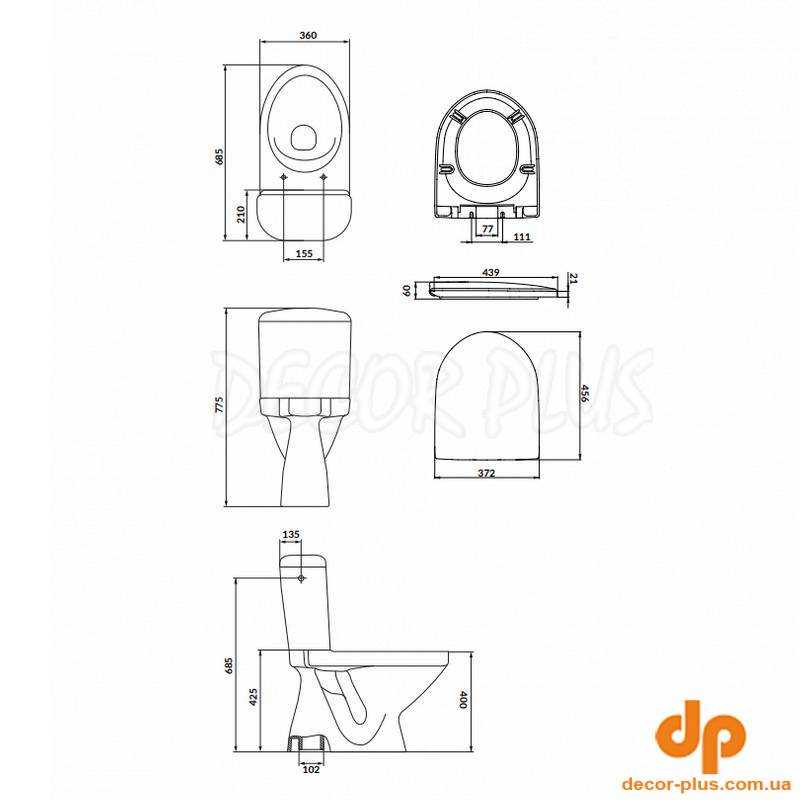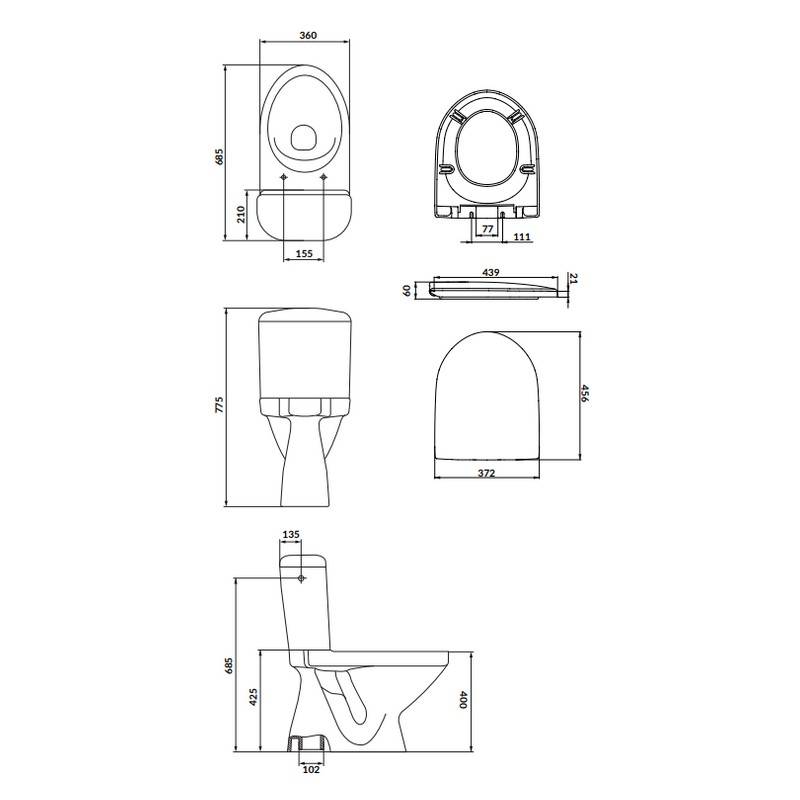 | Габарити унітазу (ВхШхГ) | 775x360x685 |