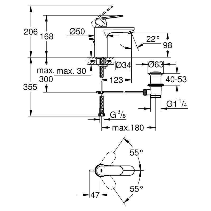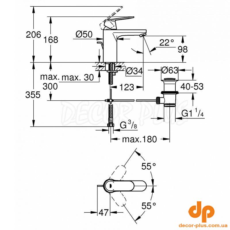 Змішувач EUROSMART COSMOPOLITAN раковина, M, гідрозатвір, хром