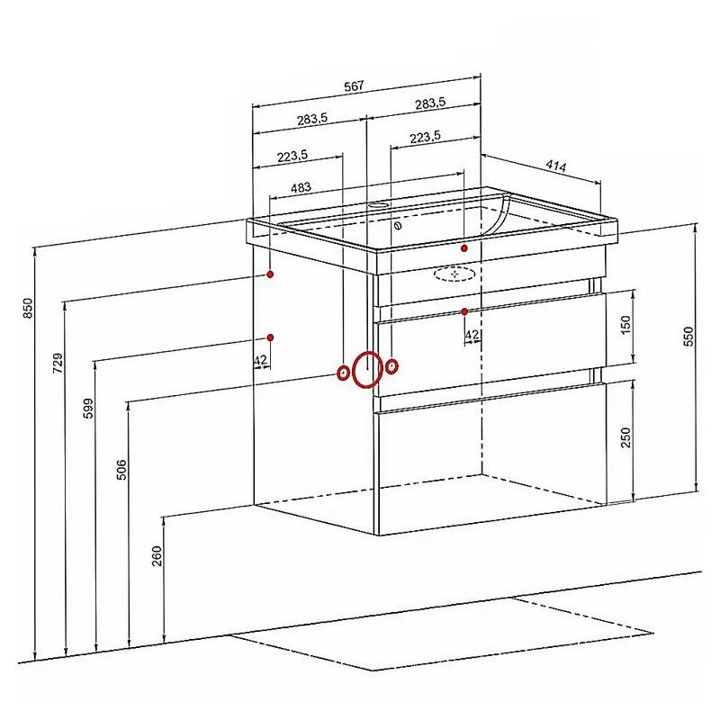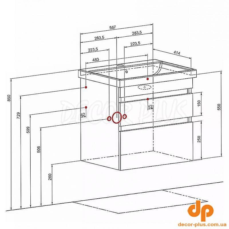 Шафка ВІНТАЖ 60+раковина FRAME 60, бетон, консольна
