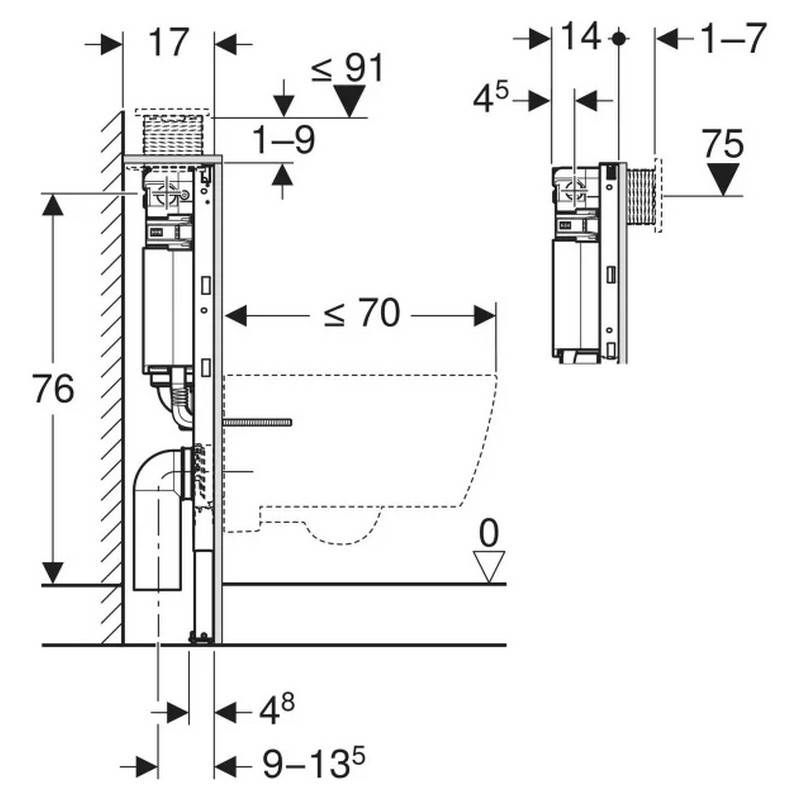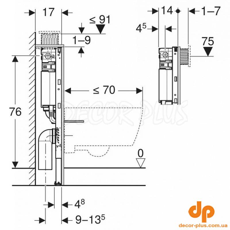 Інсталяційна с-ма DUOFIX (12см) д/унітазу 82см, .для кнопок OMEGA