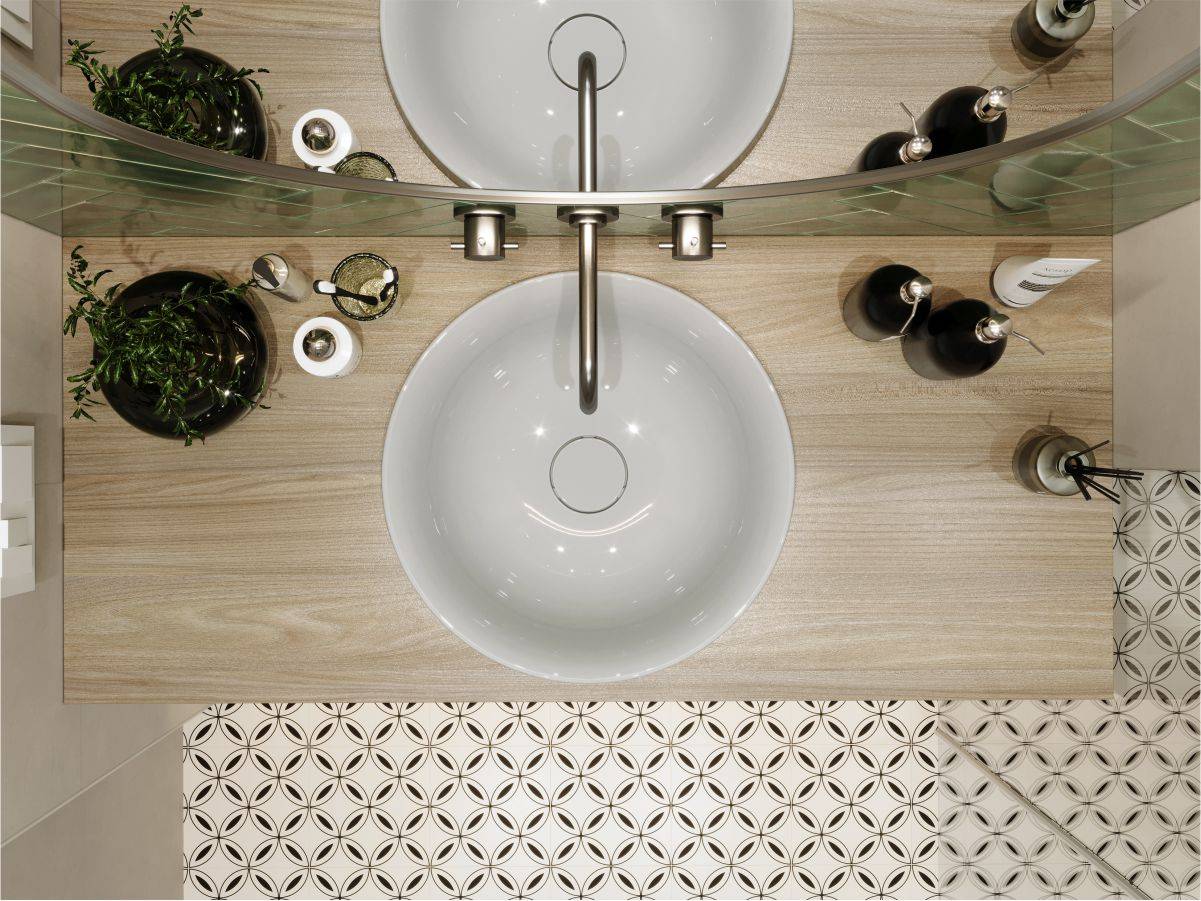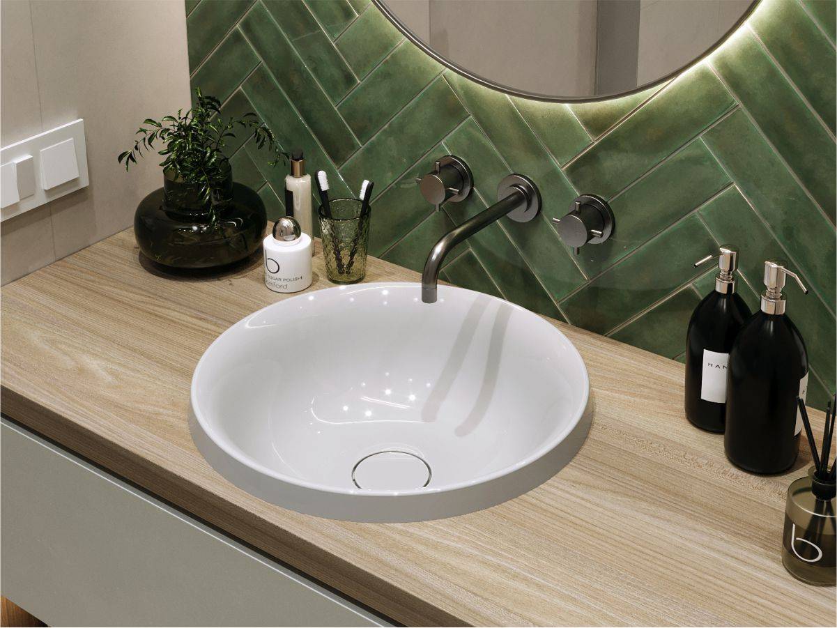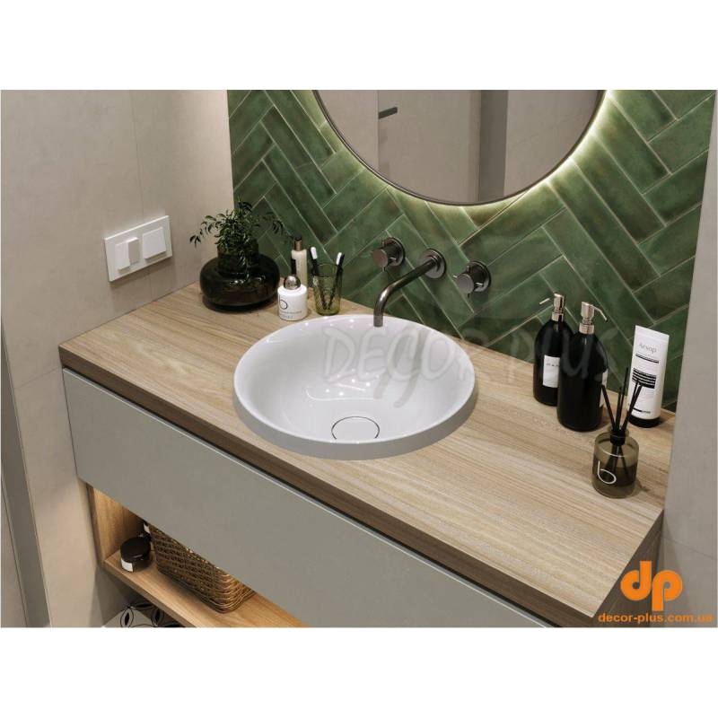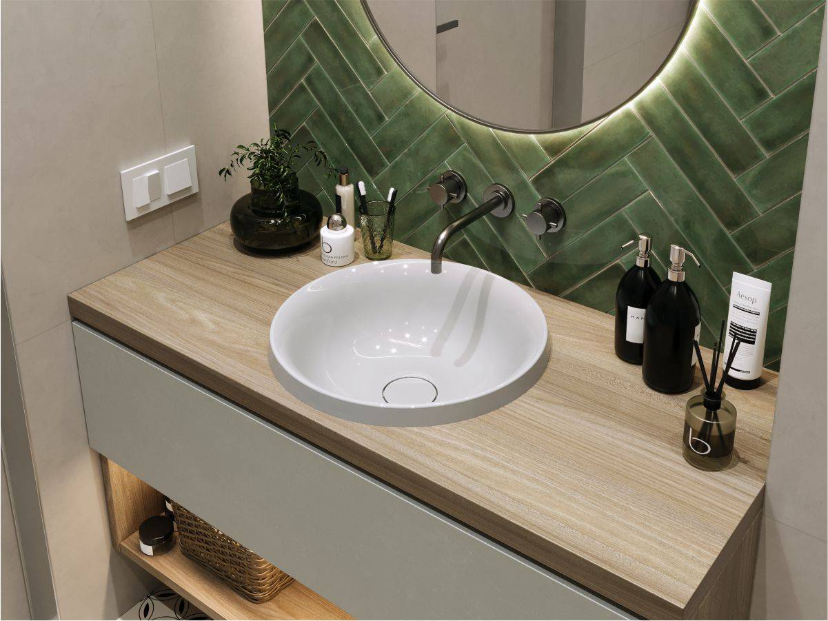 Круглий за формою чаші раковина має тип монтажу - врізний, врахуйте це перед замовленням меблів у ванну кімнату.