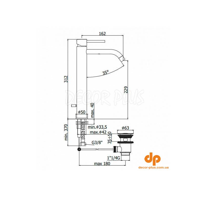 | Установка | 1 отвір |