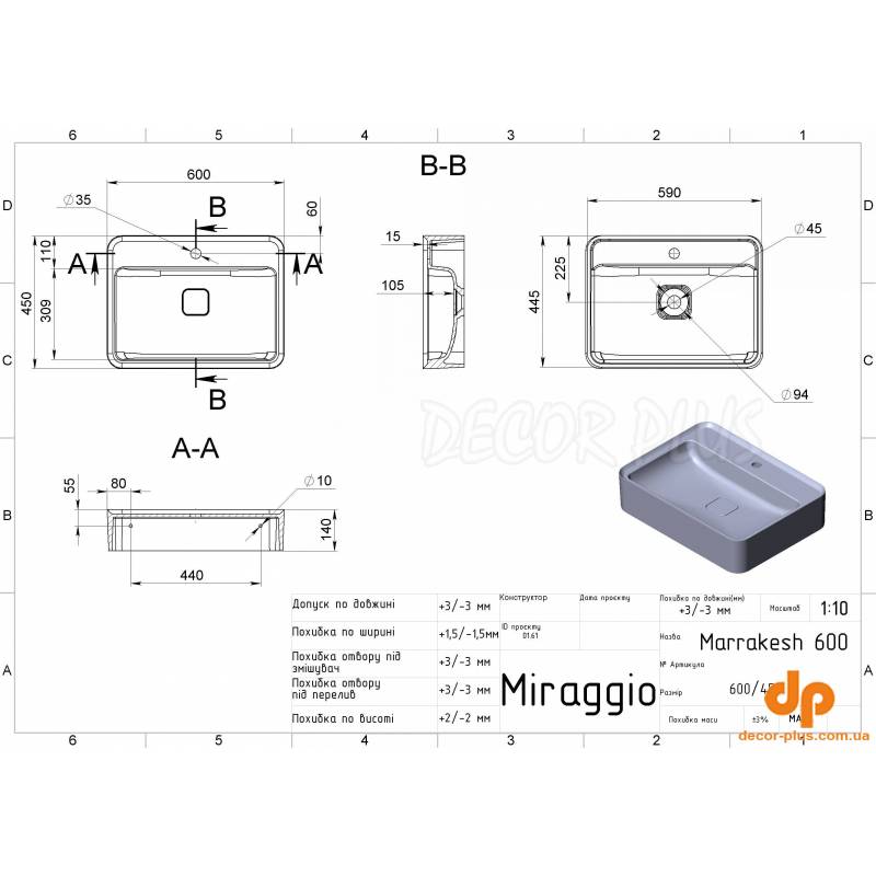 Умивальник MARRAKESH 600 від бренду MIRAGGIO - це ідеальне рішення для санвузла дому, готелю чи дачі.