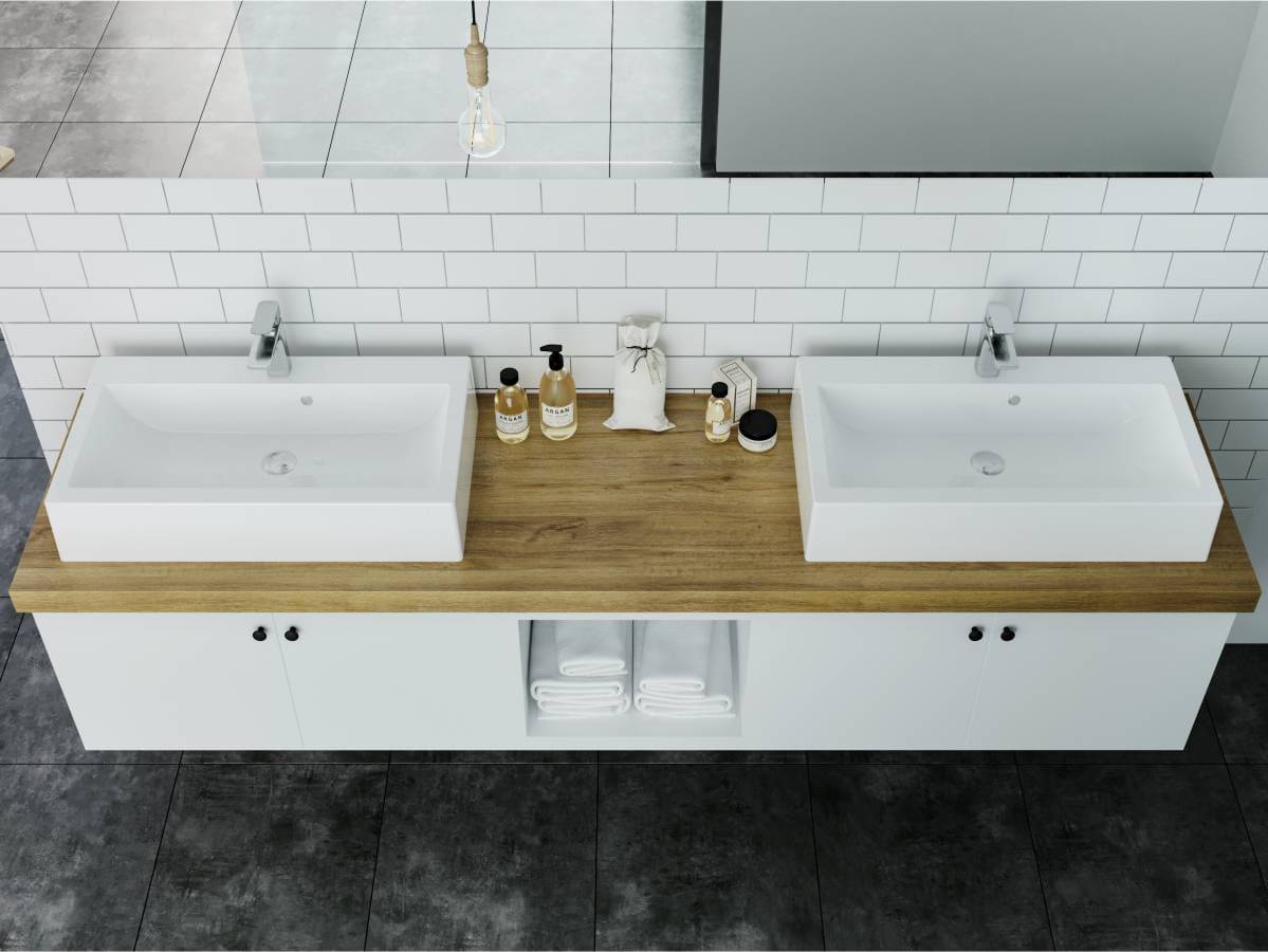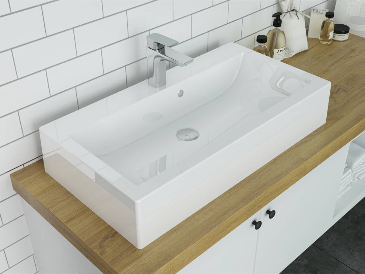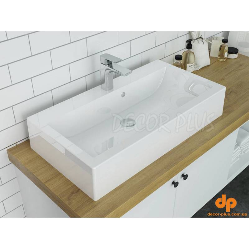 Прямокутний за формою чаші раковина має тип монтажу - на тумбу, врахуйте це перед замовленням меблів у ванну кімнату.