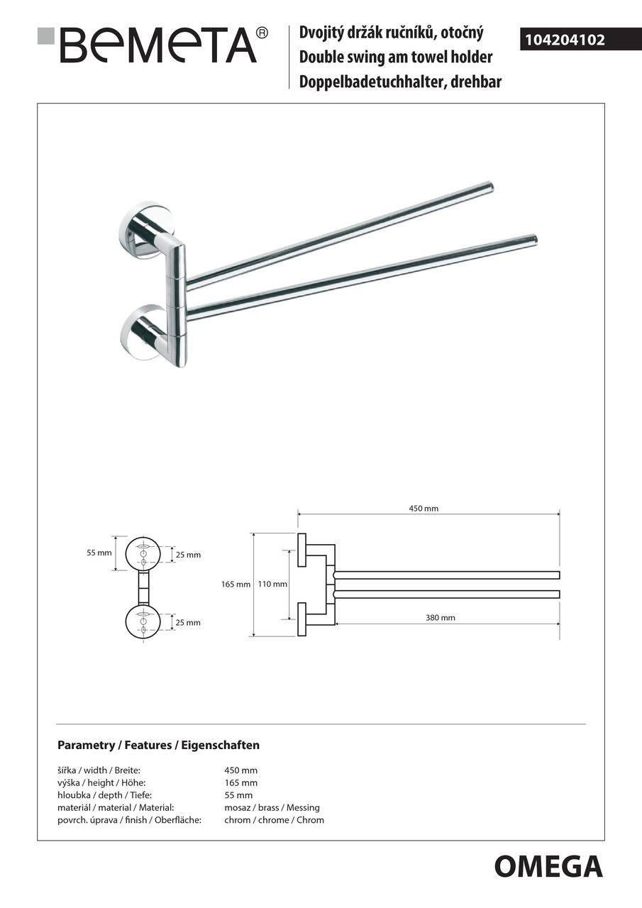 104204102 Тримач для рушників Omega подвійний поворотний код 9341