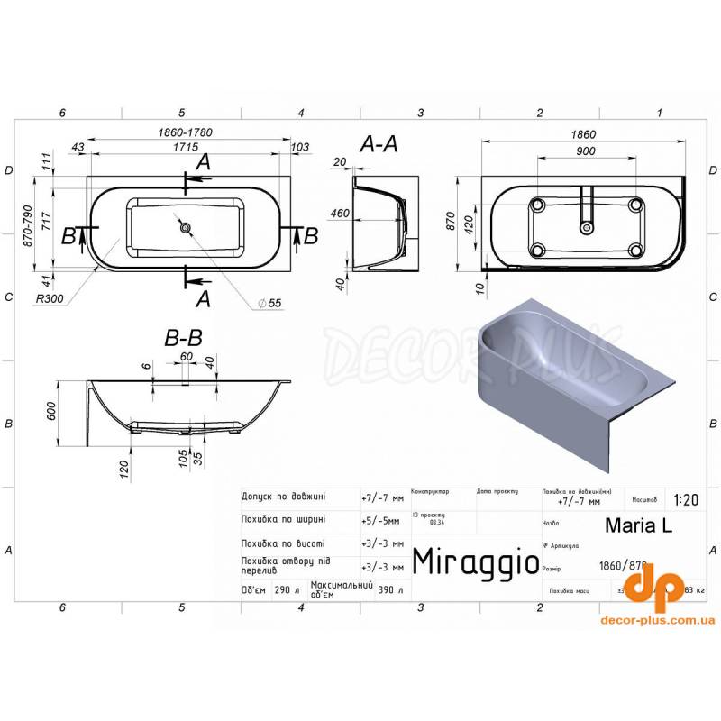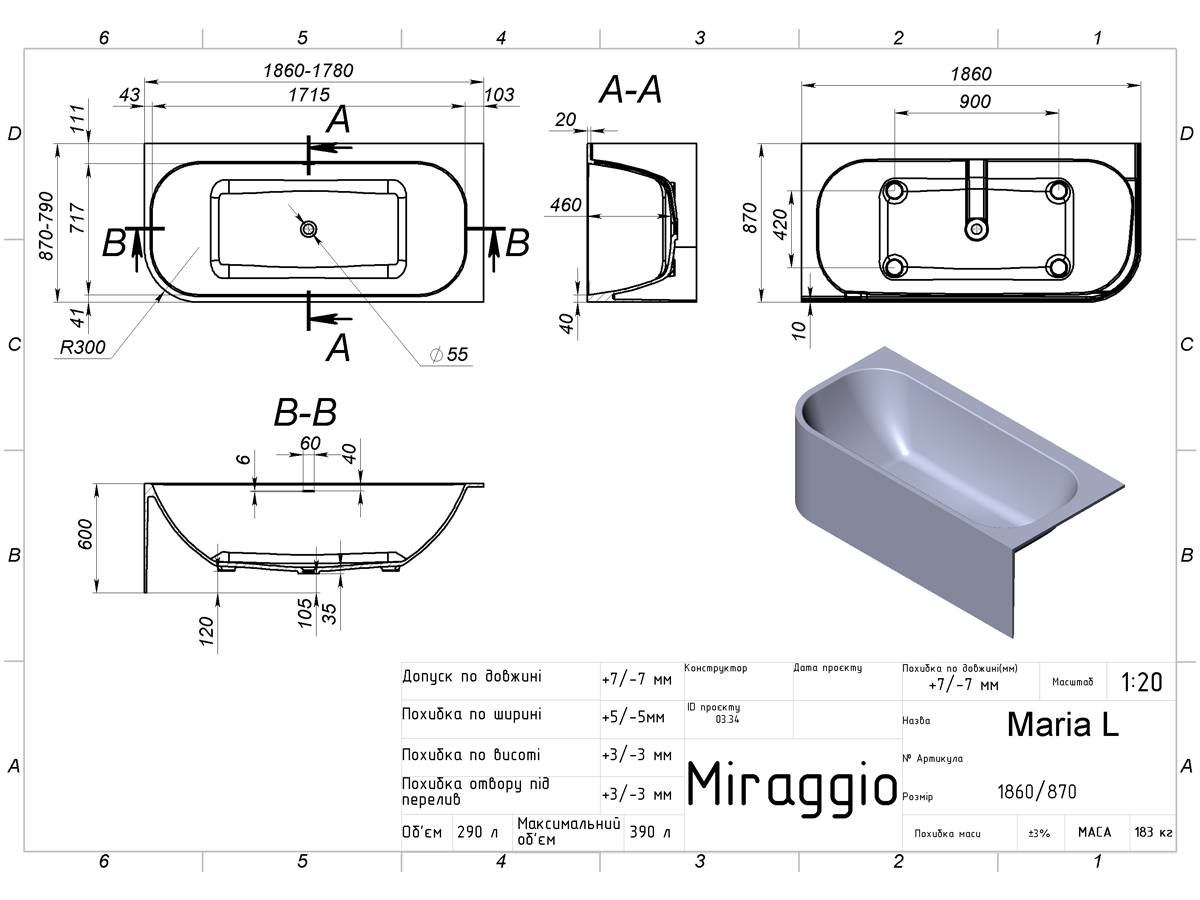 | Назва | Ванна MIRAGGIO MARIA L пристінна 186*60*46 Глянець Біла 8814055 |