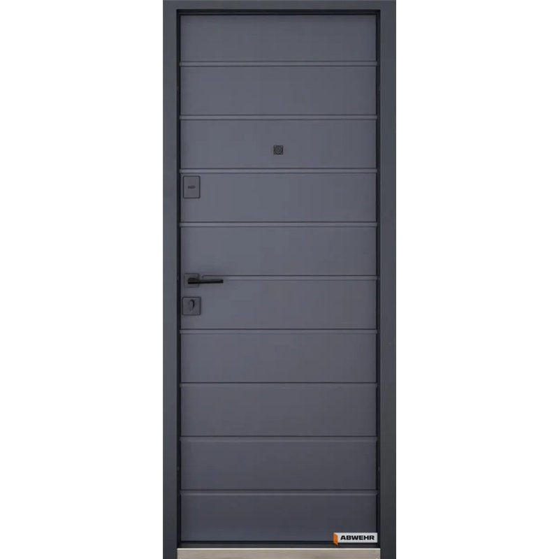 Ця модель у кольорі RAL 7021T (темно-сірий графіт) — вибір тих, хто цінує мінімалізм і надійність. Текстурне порошкове покриття зовні та внутрішнє оздоблення «Антрацит» створюють єдиний сучасний образ. Якщо ви шукаєте вхідні двері в Одесі, які підкреслять статус вашого будинку та забезпечать максимальний захист, серія Abwehr Solid стане ідеальним рішенням.