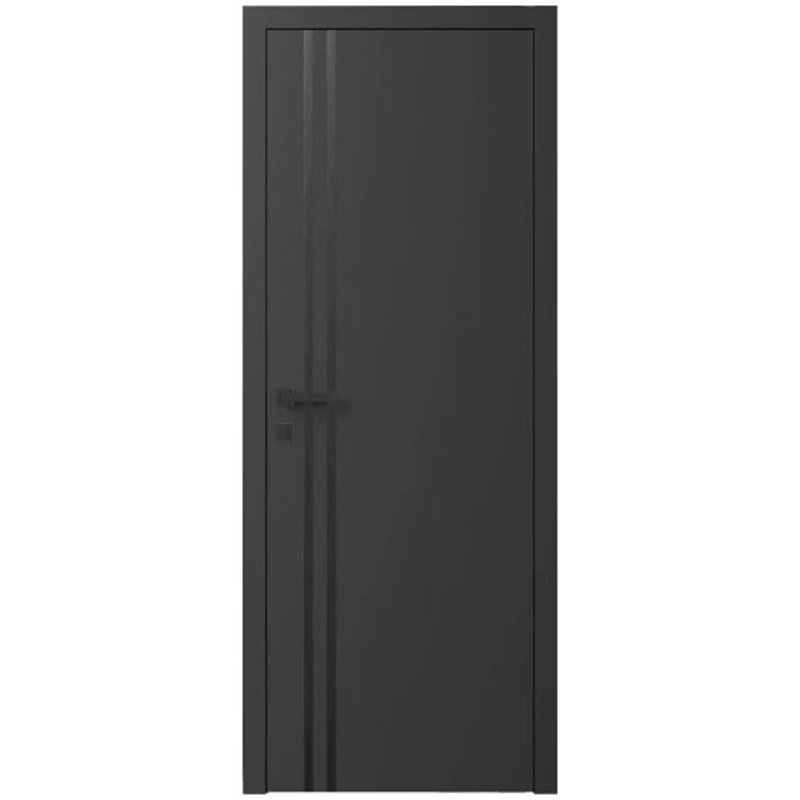 Двері міжкімнатні Ваші Двері Charm 4 Графіт чорним молдингом, базуються на міцному каркасі з натурального масиву, що гарантує конструкціям багаторічну службу та бездоганну геометрію. Поверхня виробів обробляється високоякісними лакофарбовими матеріалами, надаючи покупцеві безмежний вибір відтінків за міжнародними каталогами RAL та NCS для реалізації будь-яких дизайнерських ідей.