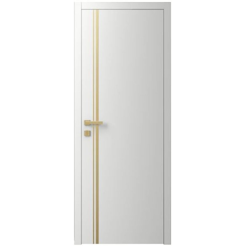 Двері міжкімнатні Ваші Двері Charm 5 Білий шовк золотий молдинг, базуються на міцному каркасі з натурального масиву, що гарантує конструкціям багаторічну службу та бездоганну геометрію. Поверхня виробів обробляється високоякісними лакофарбовими матеріалами, надаючи покупцеві безмежний вибір відтінків за міжнародними каталогами RAL та NCS для реалізації будь-яких дизайнерських ідей.