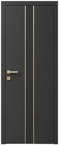 Двері міжкімнатні Ваші Двері Charm 9 Графіт золотий молдинг, базуються на міцному каркасі з натурального масиву, що гарантує конструкціям багаторічну службу та бездоганну геометрію. Поверхня виробів обробляється високоякісними лакофарбовими матеріалами, надаючи покупцеві безмежний вибір відтінків за міжнародними каталогами RAL та NCS для реалізації будь-яких дизайнерських ідей.